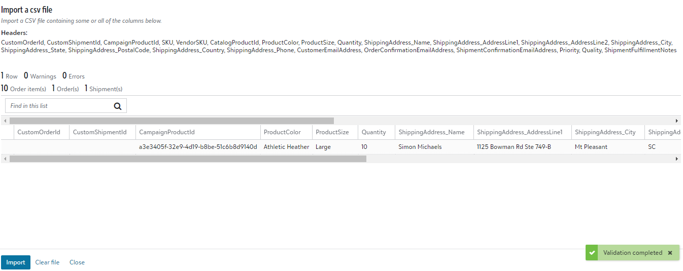 After uploading the file, you will need to validate the order by clicking the "Validate Order" button near the bottom left corner of the screen. If the validation is successful, a green confirmation bubble will appear in the bottom right corner of the screen.