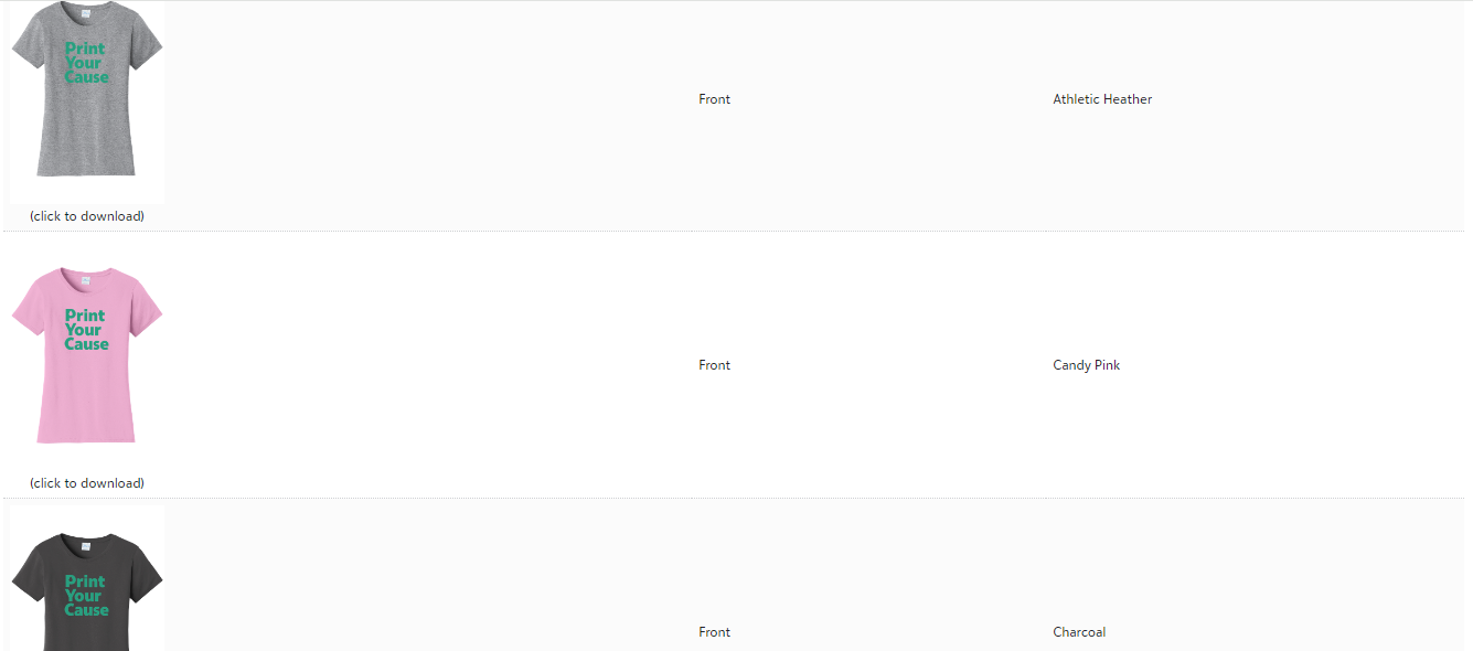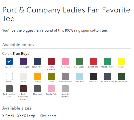 The ProductSize options can be found in our catalog. To find the desired product in the catalog, select the catalog product link located beneath the product name near the top of the page. This will bring you to the catalog listing and will show the available sizes for that product. Add your ProductSize to the spreadsheet.
