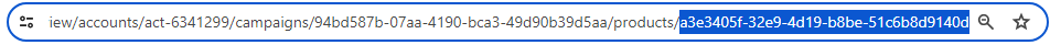 On the product page, click on the URL. Highlight the last section of the URL and copy and paste it into your spreadsheet.