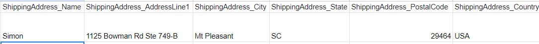 The next few columns will be for the address you want your order to be delivered to. You will add the shipping details as follows: ShippingAddress_Name, ShippingAddress_AddressLine1, ShippingAddress_City, ShippingAddress_State, ShippingAddress_PostalCode, ShippingAddress_Country.