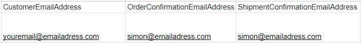 Next, add your email address to the CustomerEmailAddress field. The customer email address will only be used to contact the order recipient if there is an issue with the order (ie. incorrect shipping address or item out of stock).