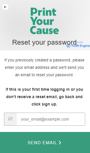 Type in the email address you used when signing up for an account. Click "Send Email" to submit the request.