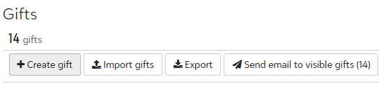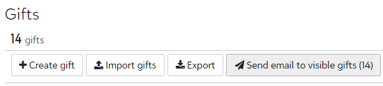 After saving the gifts, select the "Send Email to Visible Gifts" button from the menu bar near the top of the page.