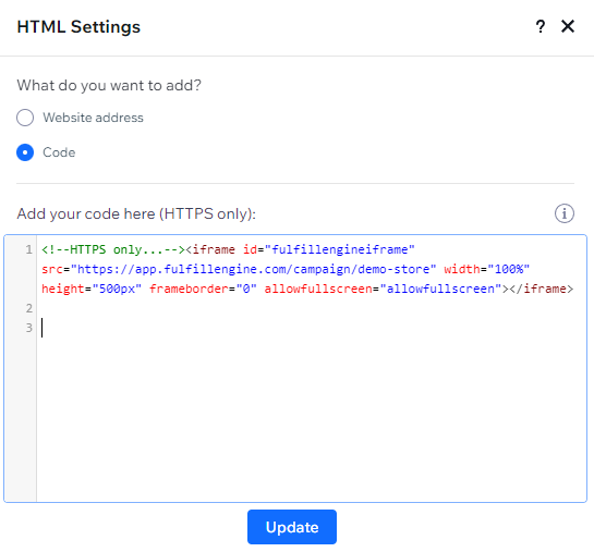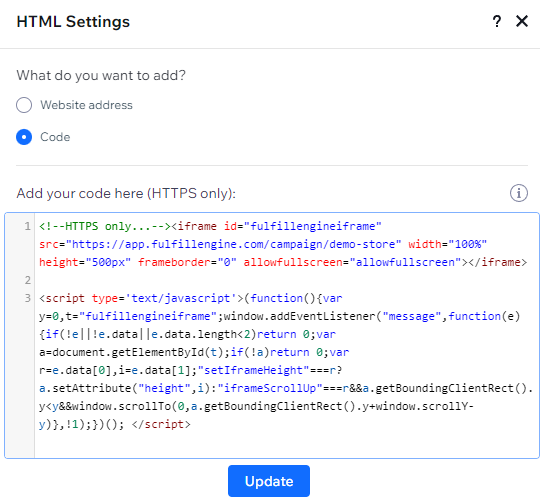 Go back to the embed section on your Print Your Cause store page. Copy and paste the second set of code into the text editor on your Wix site.