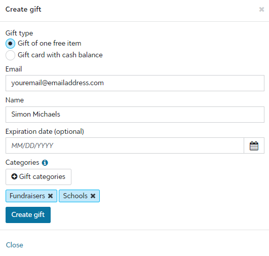 Please note, categories cannot be changed or assigned after the gift has been created. Click here to read more about Gift Codes.