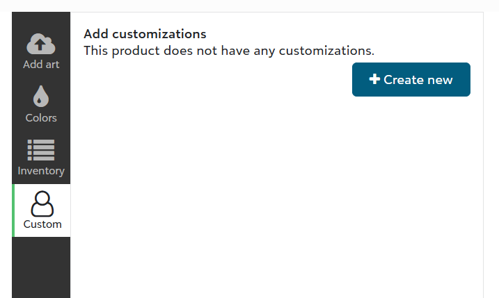Once in the product builder, navigate to the Custom tab on the left side of the screen. The select +Create new.