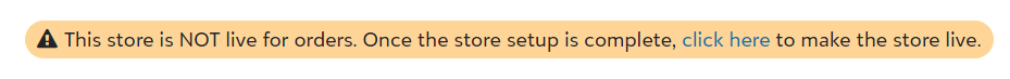 - Set your store to live! As soon as this step is completed your store will instantly be live for orders in real-time! You can do this by clicking the link in the banner you'll see at the top of your store.