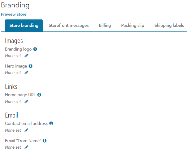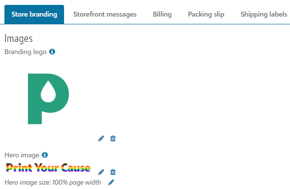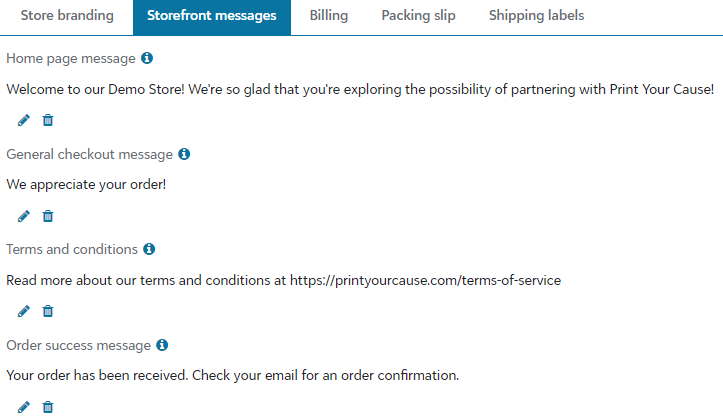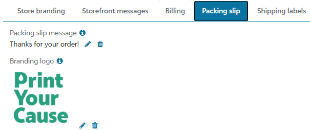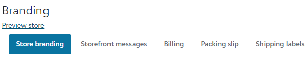 Within the Branding section of your portal, you will see multiple tabs, such as Store Branding, Storefront Messages, Billing, Packing Slip, and Shipping Labels.