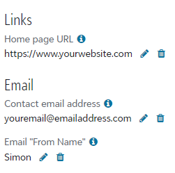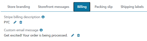 This tab will allow you to customize the messages that appear on your store page and checkout pages. These messages are optional and can be edited by clicking on the pencil icon underneath the section titles.